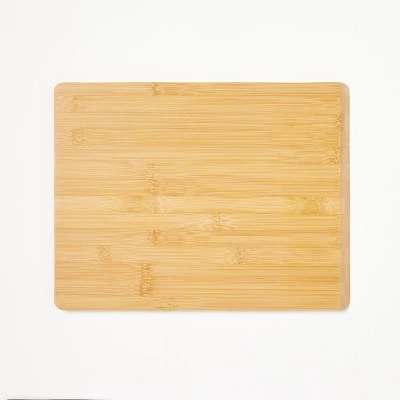 This 10-Inch x 13-Inch Reversible Bamboo Cutting Board from Figmint™ makes it easy to chop, slice and dice ingredients for your favorite recipes. Designed in a natural finish for a clean, classic look, this cutting board is made of lightweight bamboo for lasting use. The reversible design means you can use both sides, and tapered edges make it easy to lift off of the countertop to minimize dropped ingredients.