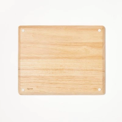Chopping, slicing and dicing ingredients will be easier than ever with this 12-Inch x 15-Inch Nonslip Rubberwood Cutting Board from Figmint™. The cutting board’s natural wood finish offers a classic, aesthetically pleasing look you’re sure to love, and it can be hand washed for easy cleaning. Plus, tapered edges for easily lifting the board off your countertop and nonslip feet that grip the countertop to keep it in place both help you minimize dropped ingredients.