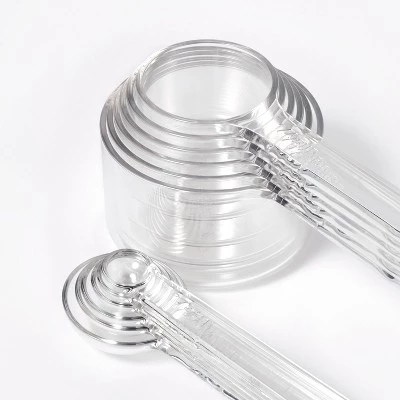 This 12-Piece Tritan Plastic Measuring Cups and Spoons Set from Figmint™ gives you everything you need to measure out ingredients for recipes. The set includes 1/8 teaspoon, 1/4 teaspoon, 1/2 teaspoon, 1 teaspoon, 1/2 tablespoon, 1 tablespoon, 1/4 cup, 1/3 cup, 1/2 cup, 2/3 cup, 3/4 cup and 1 cup measuring cups and spoons for a variety of accurate measurements. All of the pieces are made from BPA-free Tritan™ plastic in clear for easy measuring, and the handles have hanging holes and snap together for space-saving storage. Plus, the entire set is dishwasher safe for easy cleaning.