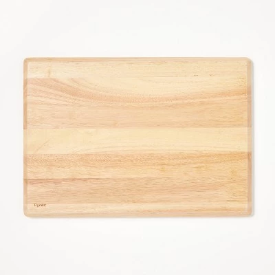 Carve up steaks, roast poultry and more to serve dinner guests with this 14-Inch x 20-Inch Rubberwood Carving Board with Juice Groove from Figmint™. Made from rubberwood, the carving board’s natural finish offers a smooth, clean look, and the reversible design means you can use both sides. Tapered edges make it easy to lift off your countertop, helping to reduce dropped ingredients, and integrated juice grooves minimize mess and make hand washing easier.