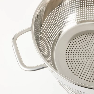 From rinsing fruits and veggies to draining your pasta, this 3-Quart Stainless Steel Colander from Figmint™ makes for comfortable, convenient use in your kitchen. The stainless steel construction is built to last and easy to maintain, with generously arranged holes that facilitate easy draining. Two side handles provide good grip for comfortable and convenient handling, while the base design allows the colander’s contents to sit above the draining surface. Plus, this stainless steel colander features a dishwasher-safe design so cleaning up is a breeze.
