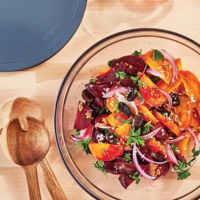 This 4-Quart Glass Mixing Bowl with Lid from Figmint™ is the perfect solution for mixing, storing and serving food. Made from clear glass with a tight-fitting blue lid that helps keep food fresh for longer, this BPA-free 4-quart mixing bowl will blend effortlessly with your other kitchenware. The bowl is dishwasher and microwave safe for easy cleaning and reheating, and since it’s also freezer safe, you can use it to store leftovers or save batter for another day.