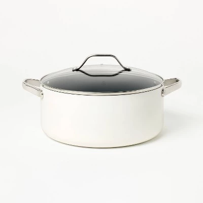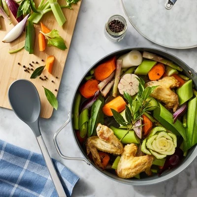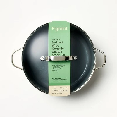 It’s easy to prepare stocks, soups, pasta and more in this 8-Quart Nonstick Ceramic-Coated Aluminum Wide Stock Pot form Figmint™. This wide stock pot’s aluminum construction promotes even heat distribution, and the smooth, nonstick surface is easy to clean and lets you cook with less oil (to protect the nonstick surface, use only with silicone, nylon or wood utensils). The pot is compatible with electric, gas and induction stoves and oven safe up to 450 degrees, and it’s also dishwasher safe, although hand washing is recommended for longer product life.